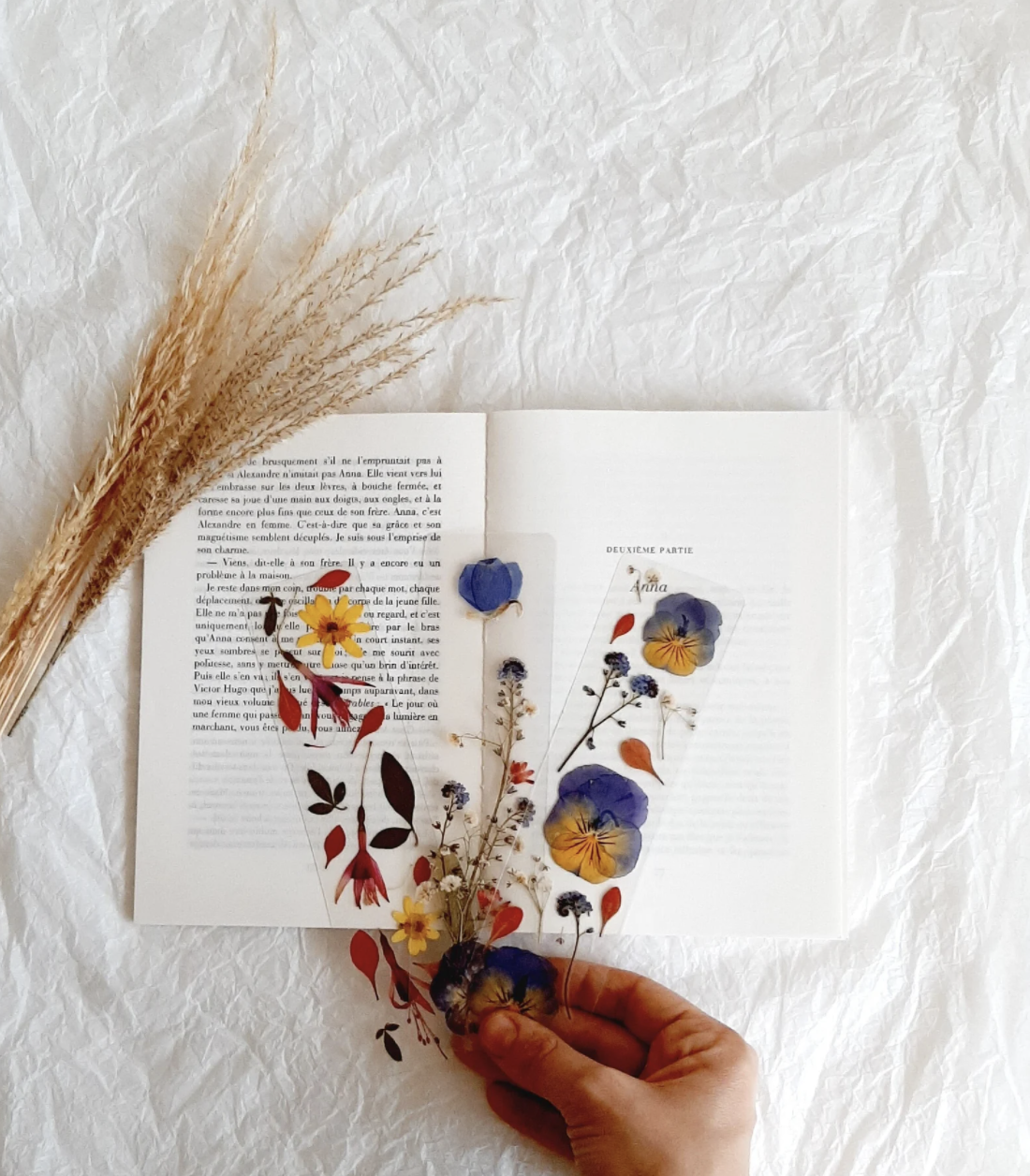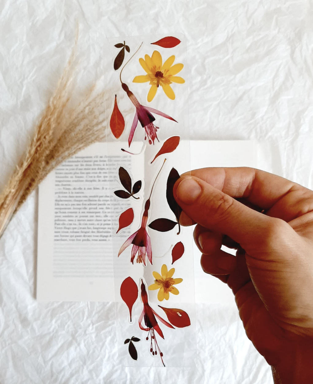 Si tu n’es pas très manuel et que tu préfères en acheter tout fait, je te conseille d’aller sur le site Etsy. Tu trouveras de nombreux marque-pages originaux à offrir. Personnellement, j’adore ce marque-page transparent réalisé à partir de fleurs séchées.