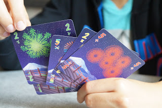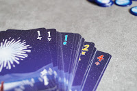 Pour cela il faut replacer les cartes de 1 à 5 par couleurs. Nous avons des pions et au fur et à mesure nous les utilisons pour avoir des indices, mais attention car si nous en avons plus le feu d’artifice explose! La particularité ici c’est que l’on ne voit pas ses cartes…mais celles des autres!
