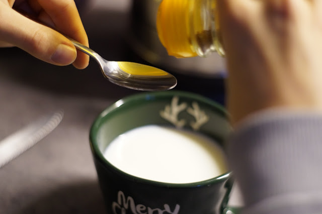 Pour commencer, je fais chauffer le lait en y ajoutant le café (pour ça tout dépend de de vous et de vos goûts !). Pendant ce temps là j’en profite pour récupérer le jus de la clémentine et de préparer une cuillère à café de cannelle.