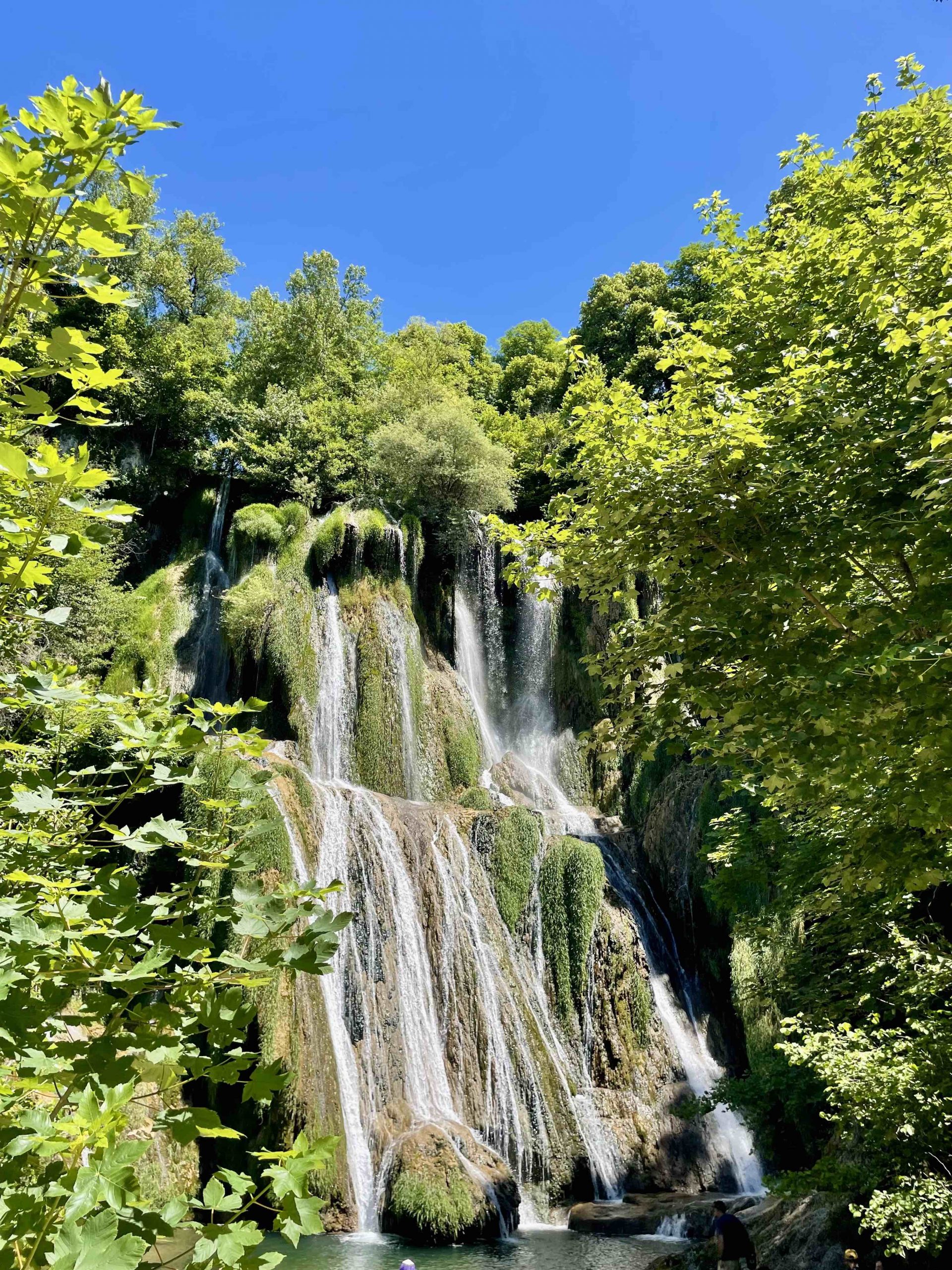 Pour débuter, nous nous sommes donc aventurés sur la piste cyclable de l’Ain à vélo et nous avons fait un petit détour par la route le midi pour aller jusqu’à la cascade de Glandieu. C’est un endroit que nous voulions absolument voir et cela valait complètement le détour ! Il y avait très peu de monde sur la route et surtout, un restaurant était accessible, sans réservation au pied de la cascade.