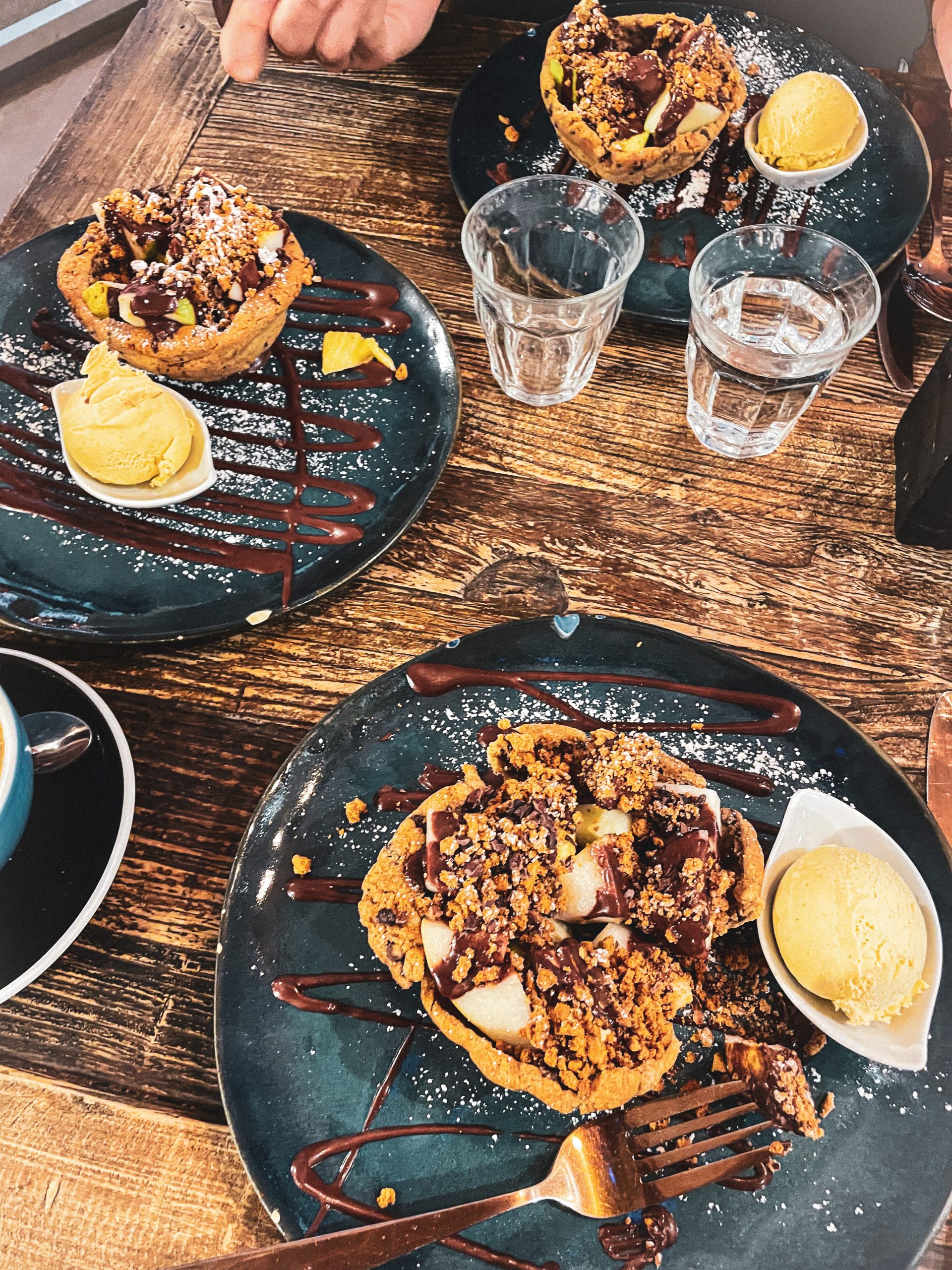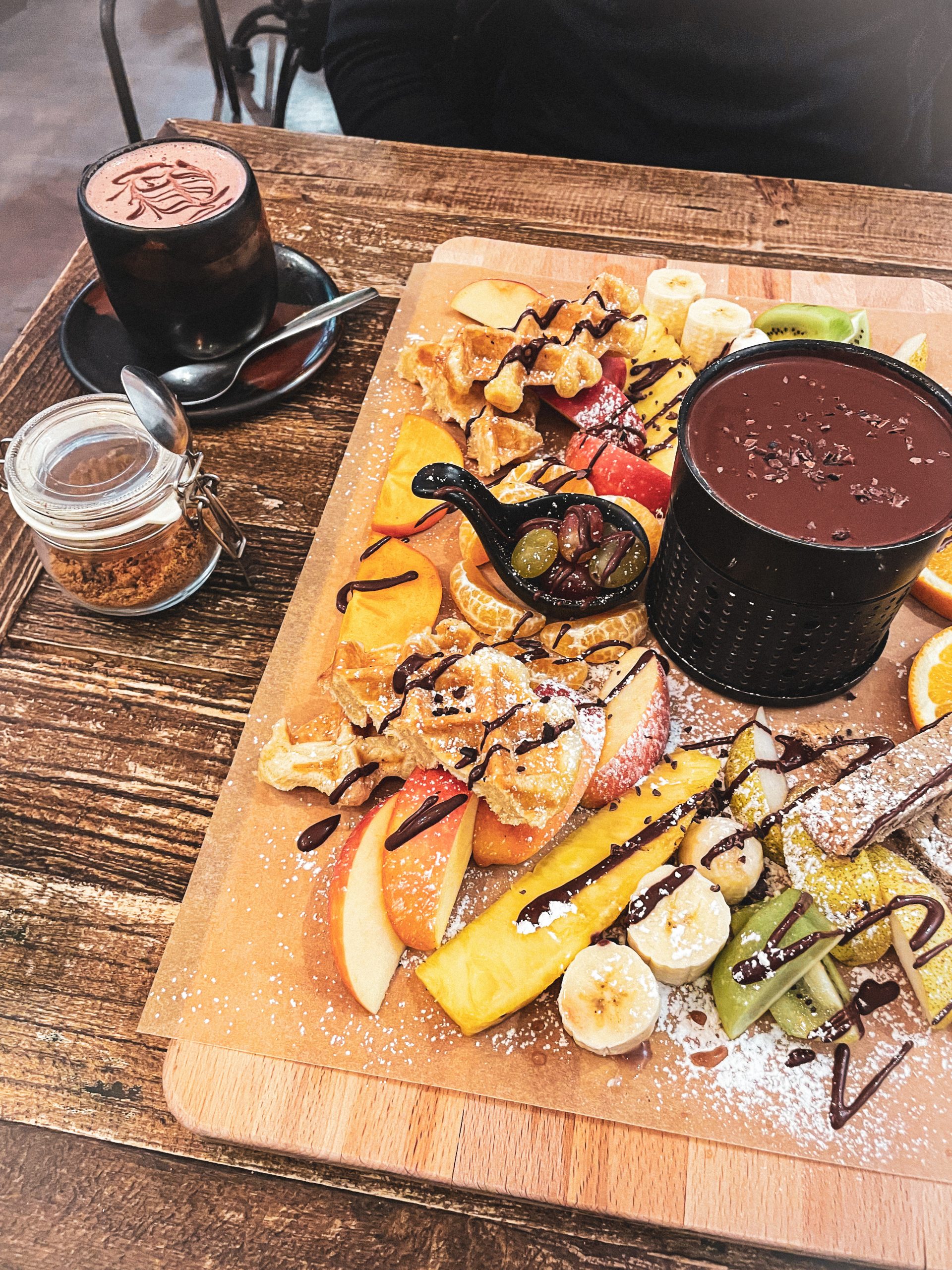 J’ai adoré la fondue au chocolat de Diggers, car elle n’était pas trop lourde. Elle coûte 18 euros pour 2 personnes et elle est composée de plusieurs fruits différents ainsi que des morceaux de cookie et de gaufre fait-maison. Nous l’avons pris en dessert après avoir mangé avant, et c’était délicieux.