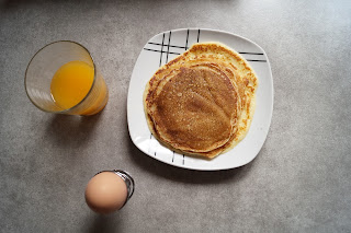 Minute culturelle : Les pancakes (nom anglais) sont des crêpes épaisses qui sont servies souvent en Amérique du Nord pour le petit déjeuner.