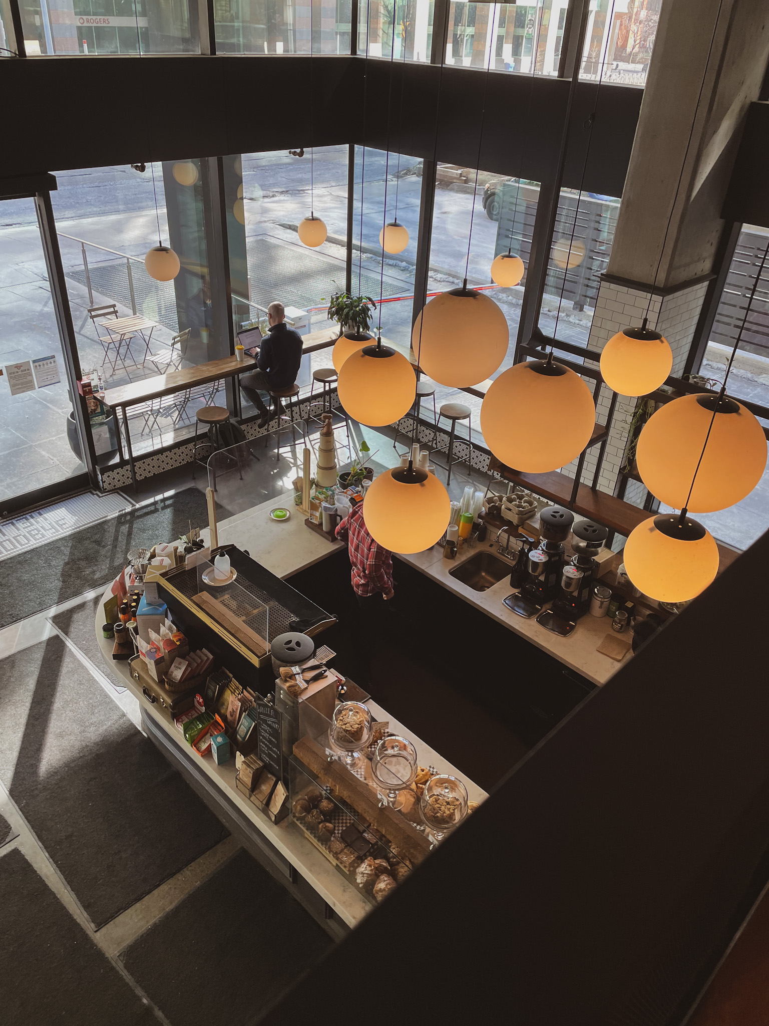 Le second café que j’ai adoré se trouve en plein centre ville de Toronto et il offre une magnifique vue sur la Tour CN. De plus les tables sont exposées au soleil, donc c’est parfait pour travailler avec une belle luminosité. J’ai opté pour le cake au citron avec glaçage et le café expresso ; c’était vraiment bon.